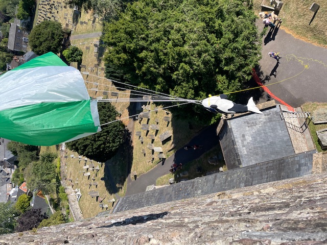 We gave Fergus a Bell rope removed from Bampton (something he actually
